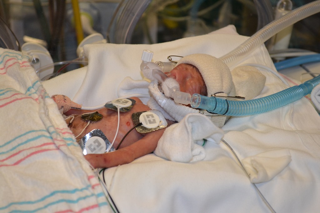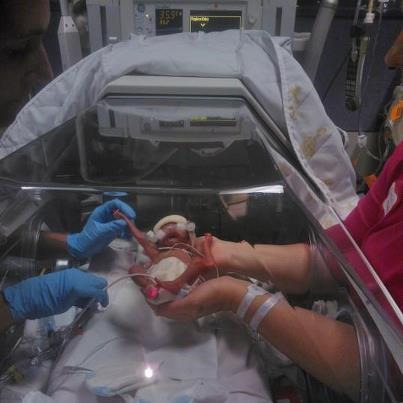 Today is another challenging day for Kaleb. His blood pH levels were low yesterday so they gave him some sodium bicarbonate to help neutralize the acidity in his blood stream. He also has some intra-cranial bleeding which is measured on a severity of 0-4, 4 being the most severe level of bleeding. One side of his brain was measured at a 3, the other a 4, so Kaleb is still in an extremely critical state. At 12:58pm today, they took another brain ultrasound, so we should hear something from the doctor soon on this. They are also mixing in nitric oxide with his oxygen to help try and dilate his capillaries and pulmonary system. We should have some results within the next couple hours from the ultrasound.