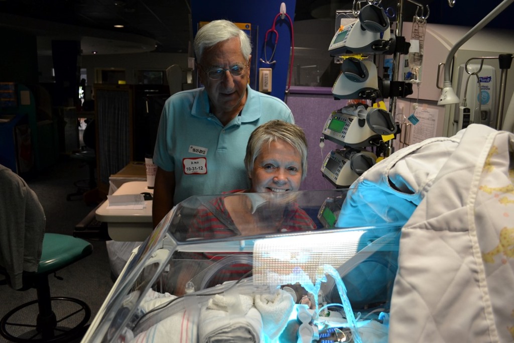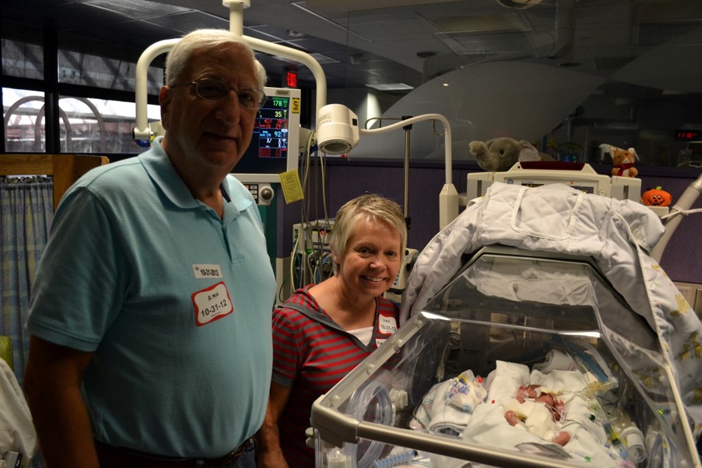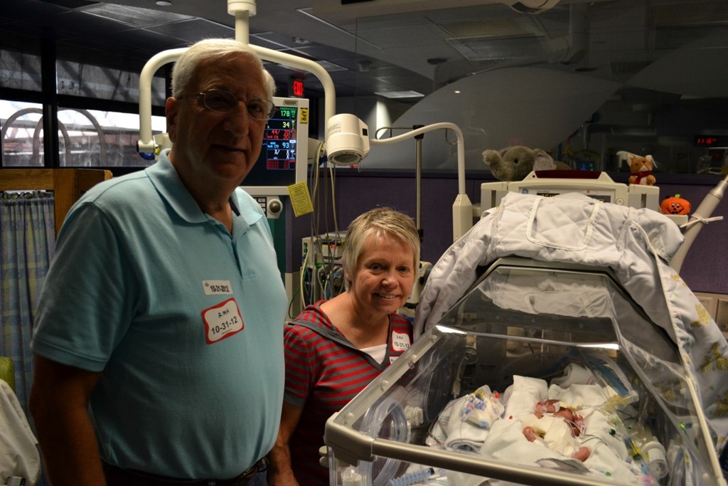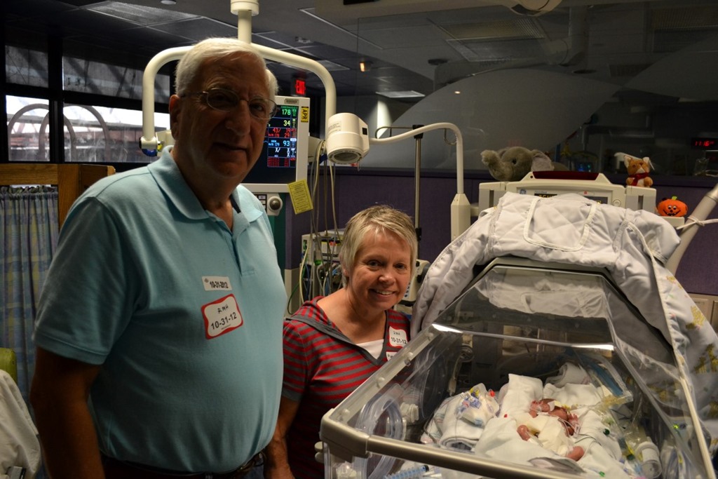 Zayda and Granny (Daddy’s Dad & Step-mom) drove down next from Kansas City and got to spend quality time with the boys and Mommy and Daddy. The boys were well behaved for them, weaning themselves off the oxygen and epinephrine a bit. Nurse Allison hung pumpkins on their incubators, and Nathan joyfully returned the favor with a trick diaper filled with lots of treats.