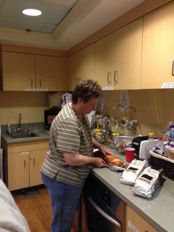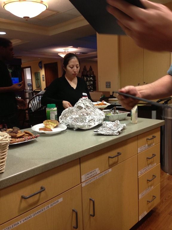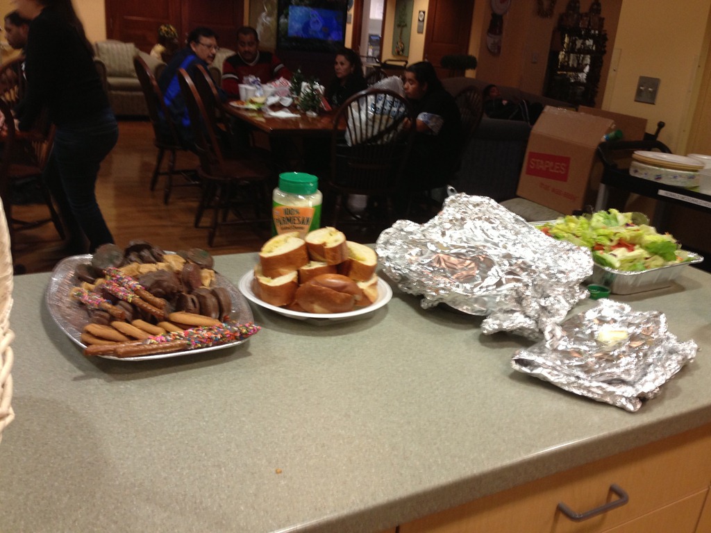 Last night we served a pasta casserole, salad, garlic bread and a large tray of holiday goodies to the mommies and daddies staying at the hospital over the holidays. They were very happy to have a nice hot homemade meal! Two of our really awesome friends went with us to help bring in the donations and serve the meal. Thank you Patty and Christina!!!! ![]()