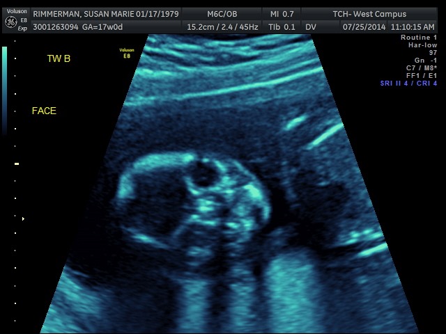 Growth Check Ultrasound (17 Weeks) July 25, 2014 By srimmerman Babies are 7oz each and growing like they should! They are both VERY active and always hungry
